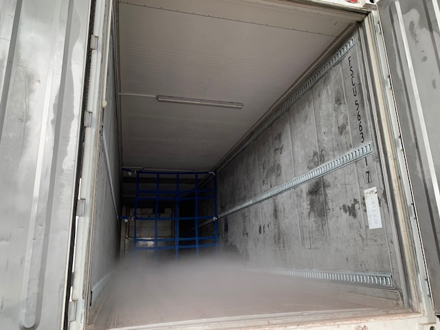 En primera instancia requerían de un equipo refrigerado, de 40 pies high cube, para que circule recogiendo estos residuos, se elaboró un contenedor especial en el que se incluía el piso liso ( flat ) original del contenedor, con canales perimetrales de desfogue, con rieles de sujeción, iluminación interior, luces de ruta y un equipo autónomo de marca Thermoking que funciona (bajo solicitud ) a +4 grados centígrados.