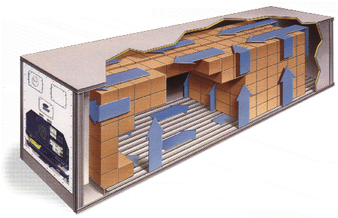 La circulación de aire interna es esencial para mantener las temperaturas prescritas en los contenedores refrigerados, por lo tanto, el aire con temperatura controlada circula constantemente por todo el espacio de carga.
