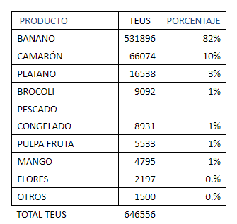 Guayaquil mueve aprox USd 5,500 reefers de exportación por semana, gracias a que las exportaciones de camarón y banano se concentran en su mayoría desde esta ciudad. Las principales compañías están acá.